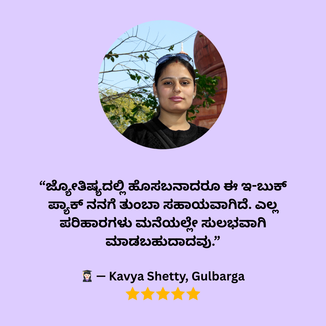 👉 ಈ 15 ಶಕ್ತಿಶಾಲಿ ಜ್ಯೋತಿಷ್ಯ ಪರಿಹಾರಗಳ ಇ-ಬುಕ್ ಪ್ಯಾಕ್ ನಿಮ್ಮಿಗಾಗಿ!